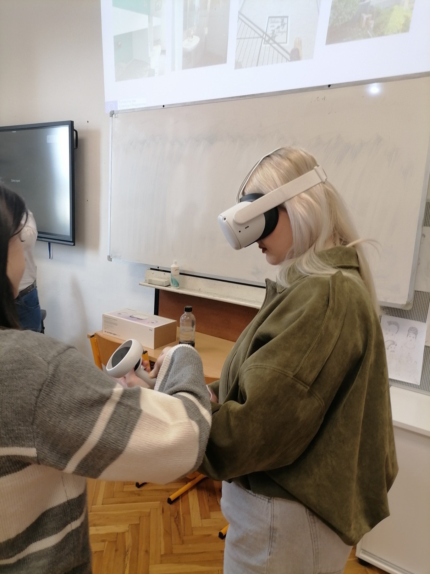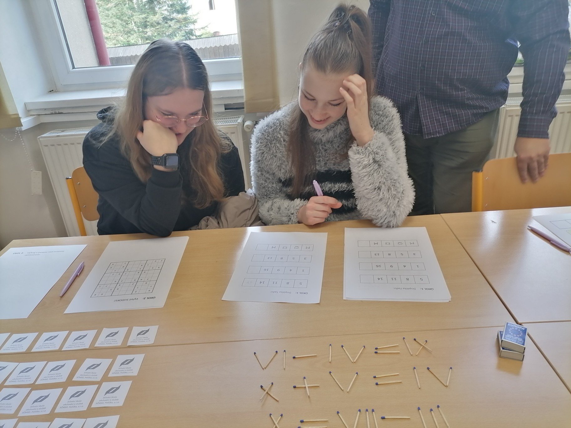Navíc škola pořádala den otevřených dveří, kde byly naše žákyně vřele a přátelsky přijaty, a mohly se seznámit s prostředím salonů místní školy a učeben, a vyzkoušet si různé pokusy, rébusy a elektronické pomůcky připravené žáky a učiteli.